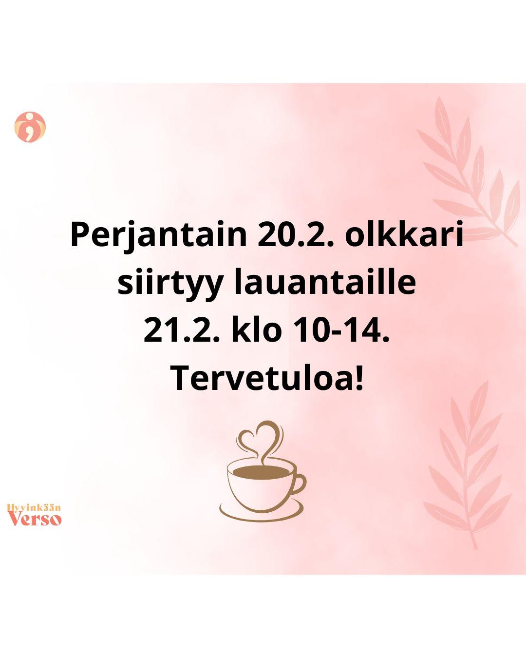 Mielenterveysyhdistys Hyvinkään Verso ry muuttaa toimintansa uusiin tiloihin Onnensiltaan (Villatehdas, Kankurinkatu 4‑6, Hyvinkää) ja toiminta käynnistyy 7.4.2026 alkaen. Jatkossa löydätte Verson…